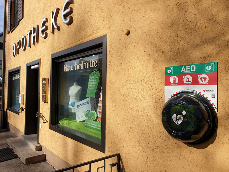 Unter Federführung der aktionsgemeinschaft pro bärenkeller e.V. wurden an zwei Standorten im Bärenkeller Defibrillatoren installiert. Dies hilft im Ernstfall Leben zu retten.